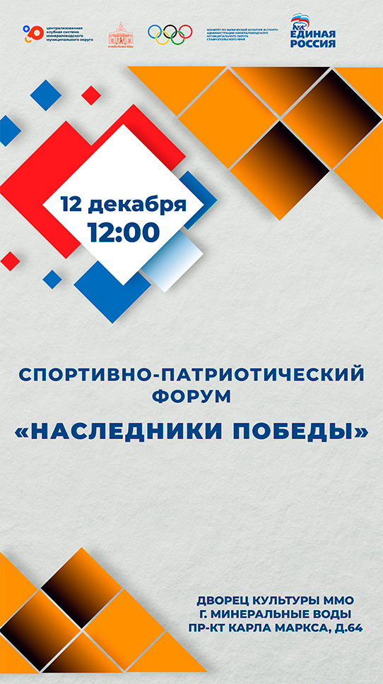 12 декабря на базе Дворца культуры Минераловодского муниципального округа пройдёт масштабный спортивно-патриотический форум «Наследники Победы», который соберёт профессионалов и любителей в области спорта, представители ветеранских и общественных организаций, журналистов и блогеров.