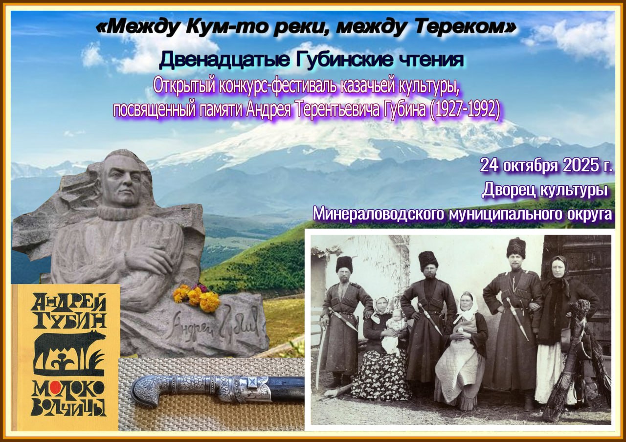 24 октября Дворец культуры Минераловодского муниципального округа станет площадкой проведения Двенадцатых Губинских чтений «Между Кум-то реки, между Тереком», приуроченных к празднованию 98-ой годовщины со дня рождения Андрея Терентьевича Губина.