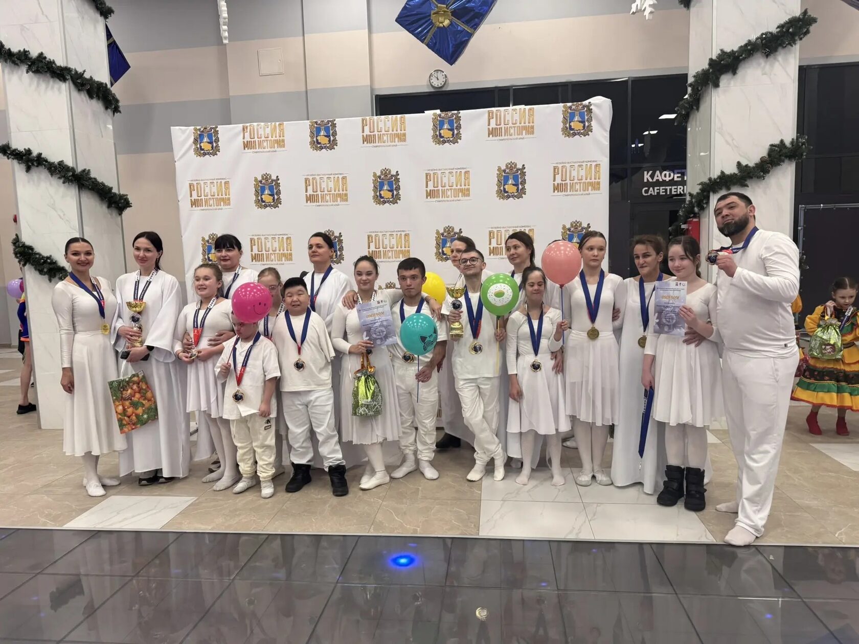 Решением высокой судейской коллегии под председательством президента федерации воздушной гимнастики по Ставропольскому краю, председателя Ставропольского краевого регионального отделения общероссийской общественной благотворительной организации помощи инвалидам с умственной отсталостью «Специальная Олимпиада России» Любови Леонидовны Шармаш оба творческих номера стали победителями.