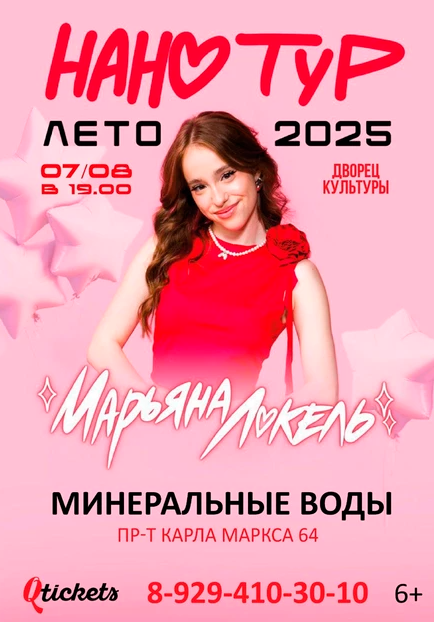 7 августа в стенах Дворца культуры Минераловодского муниципального округа состоится концерт певицы, ведущей топ-блогера, лауреата музыкальных фестивалей «Новая песня года» 2023 и 2024 годов Марьяны Локель.