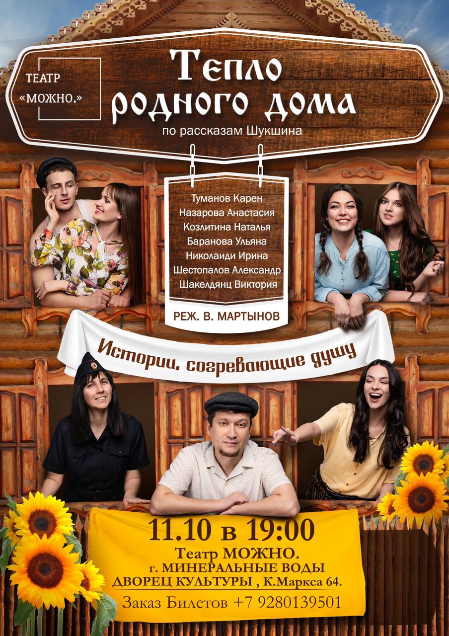 11 октября на сцене Дворца культуры Минераловодского муниципального округа будет показан спектакль «Тепло родного дома», основанный на рассказах Василия Макаровича Шукшина.